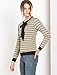 Features: Striped pattern, long sleeve, drop shoulder, bow back, crew neck, scallop trim