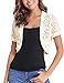 TOUCH OF STYLE: Add a beautiful dynamic to any outfit with our short sleeve bolero shrug. This bolero jacket features a solid mesh Crochet, Open Front Cropped Design detail, a chic shrug design, and a beautiful cut to crown it off. Choose from our lovely colors and treat yourself to a layering accessory you’ll simply love.