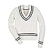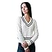 Our classic v-neck cricket cable sweater combines authentic original detailing with soft organic cotton and a flattering, feminine cut. Features contrast stripes at the neck, cuffs, and hem and a cool, chunky cable knit.