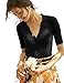 Features: Polo Sweater Style, V Neck, Fitted Short Sleeves, Slim Fit, Ribbed Pullover Sweater. Classy, Comfy, Warm and Soft Knit Sweaters For Woman.This sweater is very stretchy, it is recommended to buy 1-2 size smaller