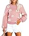Unique Design: Casual and loose fitting, round neck, daisy printed, bubble sleeve in full length, super soft fabric, ribbed cuff and hem, light and comfy pullover sweater.