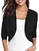Feature: 3/4 sleeves shrug, Open Front Cardigans, Solid color bolero jacket, cropped design, exquisite ribbed hem and sleeves, Soft, Breathable, Stretchy.