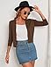 The high stretchy shrug cardigan features 3/4 sleeve, crew neck, hook-and-eye closure at neckline and cropped design.