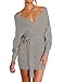 ❀ Features: Cute v neck sweater top, long sleeve, tie knot on waist, wrap fitted sweater with belt, balloon Sleeve Pullover, ribbed knitted blouse, sexy solid plain color Mini Dresses