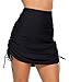 This women swim skirt bottoms feature an elastic high waist, tulip hem and full coverage. Shirred look swimming skirt attached panty underneath made of the same material as the skirt.