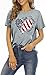 ♫ USA Flag Graphic T Shirt for Women, 4th of July Short Sleeve Casual Independence Day T Shirt for Women.