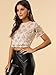 Tassel Glitter Sequin, Round Neck, Sheer Short Sleeves, Crop Shirt Blouse
