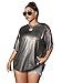 Feature: half sleeve, round neck, drop shoulder, sparkly mesh, see through, oversized mesh shirts for women