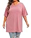 【Tunic Tops】The Length is Tunic Length (2X 33.07'', 3X 33.46'', 4X 33.86'', 5X 34.25''), which Makes this Plus Oversized Tshirt Not Boxy. Featuring Vneck, Drop Shoulder, 1/2 Sleeve to 3/4 Sleeve depending on your arm length. Solid Color, Oversized Cutting, Flowy and Loose Fit. Trendy and Basic Plus Size Oversized T-shirt You Must Have to Wardrobe.