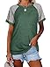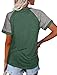 Design: round neck, short sleeves, color block raglan sleeves with different color trim.