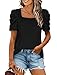 ❤Features: Chic square neckline pullover, puff sleeve tops, basic solid color, loose fit, slouchy shirt, lightweight pleated short sleeve shirt makes you flattering in this autumn and winter.