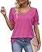 Features: Classic v neck, cute puff short sleeve, unique pointelle eyelet design, solid color, loose-fitting, cute summer tops for women, make you so special and stands out in the crowd.