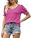 Trendy and elegant v neck t-shirt with puff sleeve, short sleeve tunic top, solid color tee, casual loose t shirts, simple and elegant tops