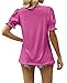 Womens tops, Puff Sleeve with Button Cuffs, Short Sleeve, Crew Neck, Solid, Casual Loose t shirts
