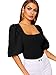 Features: Three Quarter Length Sleeve, Solid Color, Puff Sleeve, Square Neck, Crop Top, Slim Fit, Summer Tee, Comfortable for Skin