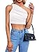 Design:one shoulder pull over,gathered ruched,one straps,sleeveless crop tops,slim fitting,asymmetrical tops,cropped tops,one shoulder tank tops,sexy cute crop top,camisole tops