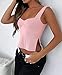 Design: Sleeveless, slim fit, cropped length, square neckline, pleated ruched curve bustier shape, sides slits hem, tight slim fit, flattering sexy strappy tank tops,form fitting wide strap tank top ,2023 summer trendy fashion.