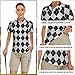 【Womens Argyle Golf Shirts】The women short sleeve tennis shirts with lapel collar and zipper closure,the shoulder line adopts 4 needle flatlock seams accentuates the sporty design, offers a modern athletic look.Argyle shirts with v neck becomes the highlight of women's polo shirts.