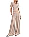 FASHION TWO PIECE OUTFITS: Slim Fit Crop Tops With High Waist Wide Leg Long Pants Create A Casual A-Line Silhouette, Which Perfectly Trims Your Body Proportion And Makes You Look Slander
