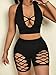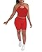 【DESIGN】:2023 New outfits for women with criss cross halter sleeveless crop top and silm fit short pants,backless,solid color