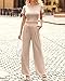 Design: Linen lounge sets for women, short sets 2 piece outfits, sleeveless, square neck,solid color, relaxed fit, tank crop top,two pieces workout sets,preppy clothes, matching high waisted loose athletic long wide leg pants with two sides pockets,standard size,suit for summer vacation.