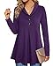 Loose fit tunics for women, flowy blouses, 3/4 sleeve, v neck with button