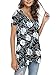 V Neck T-shirts For Womens Floral Tops - Classic V neck tops for women with the crossed V shaped stitching, modify the neckline and make your face look slimmer, perfect full figure plus swing tunic floral tops for women. Buttons decoration offer a cute and stylish feeling.