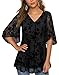 【Design Feature】 Flutter 3/4 Long Sleeves/ V Neck/ Loose Fit/ Floral Mesh Double Layer/ High Stretchy/ Flowy Tunic Tops/ Lightweight/ Chiffon Blouses For Women
