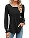 【Tunic Tops Feature】-This shirts is a simple fashion design, basic and cute. crew neck long sleeve plain womens tops, puff sleeve matching smocked cuffs, Plus front pleated design, let this pleated shirts more flowy, fresh and elegant.