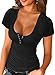 Feature: Short Sleeve Shirts, Womens Summer Tops, Tunic Tops for Leggings for Women, Solid Color, Lightweight Tanks for Women, Slim Fit, Basic Tunics, Deep U Neckline Sexy Tops, High elastic Shirts, Front Button Placket Detail.