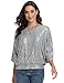【DESIGN】The high and soft fabric makes it suitable for most women. The womens sequin top full mesh-lined. Mesh patchwork under the sequin, to protect skin from scratching, It is't to drop the sequins after washed, not faded.,enough to keep. Womens glitter tops not too low cut but low enough, best size after several new adjustments wouldn't bind your chest and elbow activity.Puffed three quarter length sleeves can grooming your arms.
