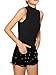 A sleeveless scoop front top with full metal front zip and adjustable strap buckles.