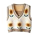 ❀Girls Casual Floral Sweater Vest----Y2K 90s E-girl Short Knitwear Sweater Vest is a knitted fabric, loose fitted preppy style. V neck tops tank top for modern women, teen girls. Streetwear sleeveless freedom look, v neck cropped sweater.
