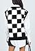 V-neck knitted ribbed short tank crop top,sleeveless,printed with checkered parttern