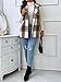 Feature: sleeveless, lapel collar, button up, longline, plaid print, vest coat women