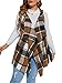 Feature: sleeveless, hooded, open front, asymmetrical hem, plaid print, casual style