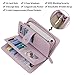 Travel Organized - Roomy and Collected, 1 passport pocket, 1 boarding pass compartment, 3 credit cards slots, 1 id slot, 1 sim card pouch, 1 coupon ticket slot, 1 cellphone pouch (max 5.8 inches), 1 money & coins zippered pocket (fit U.S. money), 1 key holder and 1 pen holder, 1 slim pocket