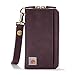 Practial design - 12 interior credit card slots, 2 bill pockets, 1 zip coin pocket, 1 phone compartment, 2 open compartment for banknotes, 1 removable leather wristlet strap.