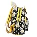 Contemporary Dual gold tone chain & faux leather shoulder straps with fashion metal gold tone D ring detail at the sides. Detachable floral printed scarf while back has an exterior slip pocket the full length of the bag!