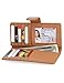 MATERIAL - The Palomino Kacy durable and lightweight organizer features a woven fabric exterior with distressed brown full-grain leather trim and a branded STS logo on the outside of the compact clutch