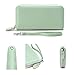 Practial design - 12 interior credit card slots, 2 bill pockets, 1 zip coin pocket, 1 phone compartment, 2 open compartment for banknotes, 1 removable leather wristlet strap.