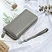 Practical Features: 15 Card Slots, 1 ID Window, 1 zipped coin pocket, 4 open compartment for cash, checkbook, phone and passport. 1 removable leather wristlet strap.The zip around wallet for women is stylish and functional, keep all everyday essentials in one safe place
