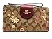 10 card slots with snap closure, including 1 clear plastic ID slot. 1 bill section. Zipper compartment contains 2 gusseted pockets and 1 zipper coin pocket.