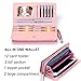 1 interior ID window pocket, 6 credit card slots, 2 slip pockets, 1 phone pocket, 1 large open compartment & 2 zip compartments