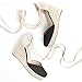 Sandals with braided espadrille sole, soft white linen Sandals upper, environmental material, ankle strappy design, wedge heel, makes it soft and comfortable to wear. Heel measures approximately 2.5", the platform wedge heel provides a great height without the discomfort and makes your legs look amazing.
