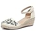 Comfortable Espadrille Wedges With a 3.5 Inch Wedge Heel, Adjustable Ankle Strap Buckle.