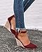 Womens summer wedge sandals, ankle buckle strap, adjustable for better fit; Stacked wedge heel, elongate your legs to highlight your charming figure; Pointed closed toe, every step is elegant