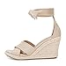 Wedge sandals for women, ankle strap wrap, open toe, single band, slingback, faux suede and solid pattern