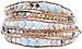 chan luu five wrap bracelet featuring semi-precious stones and crystals on tota leather. Fastens with an oval Chan Luu button.