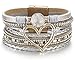 【UNIQUE DESIGN】 The boho bracelet features multiple strands of leather and combination with heart shape alloy and crystal stone, adorned with rhinestones and square decorations in the similar color to the bracelet. Various colours available, suitable for your different clothes, give you a fashionable and eye-catching overall appearance. The best way to emphasize your hand.